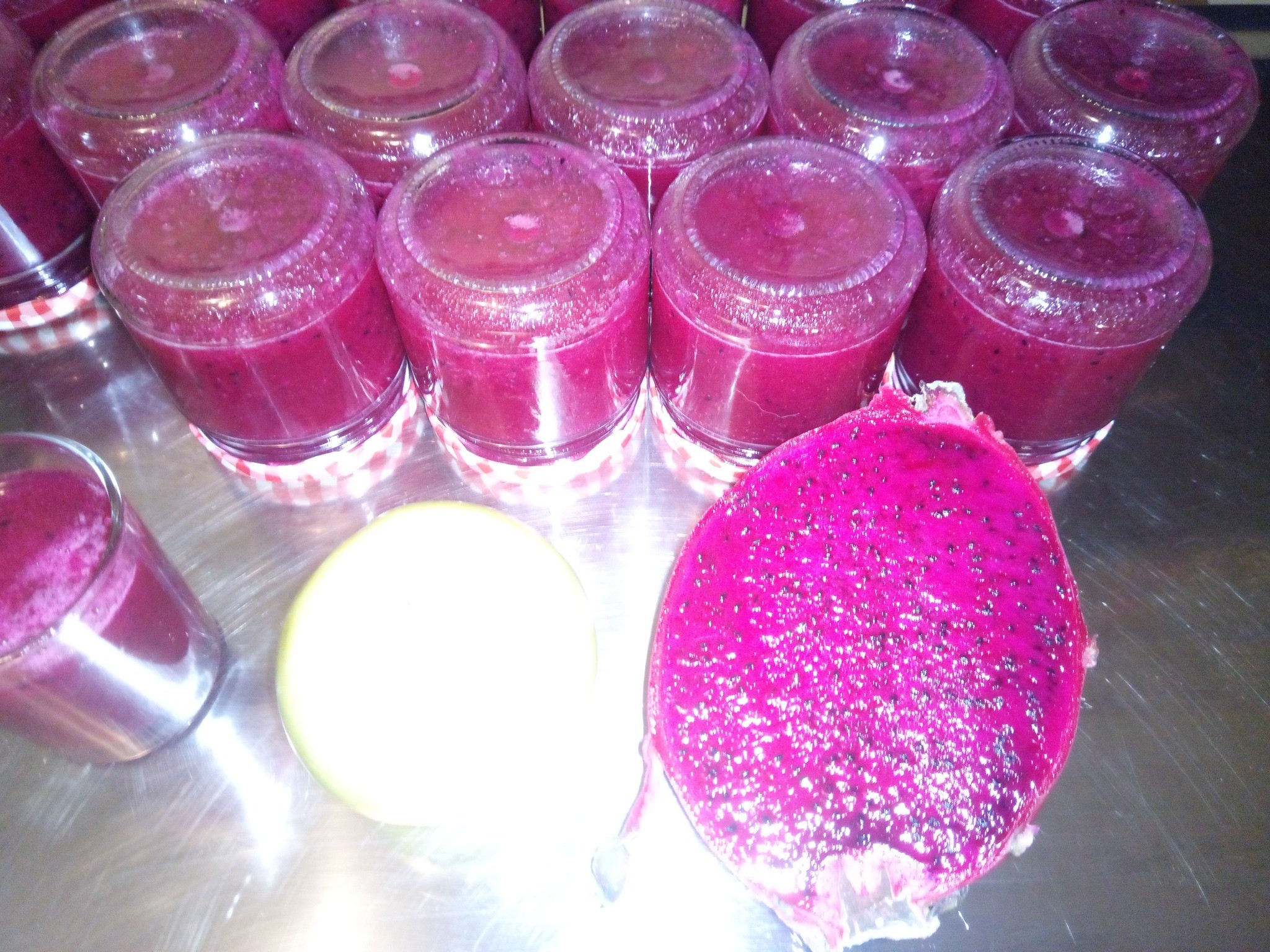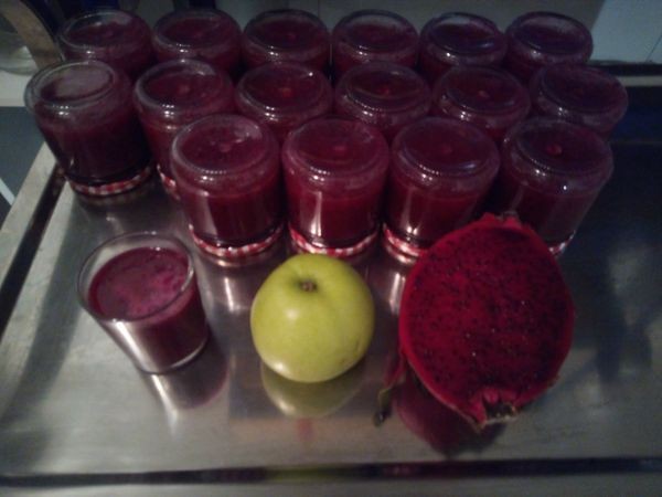 confiture pitaya pomme 200 ml  fait main fabrication artisanale avec fruits frais et mur