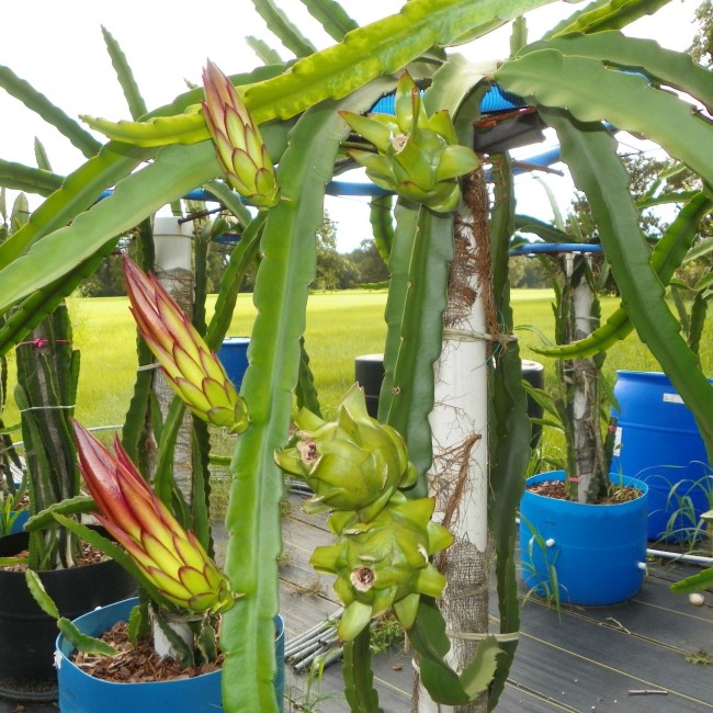 C'est une variété Pitaya autostérile. Les fruits sont petits et abondants, pesant entre 180 et 250g avec une peau verte. À maturité, il a une couleur rose transparente avec des nageoires vert citron et une chair blanche. Plus le fruit reste longtemps sur la vigne, plus il sera sucré.