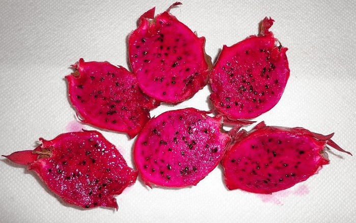 Le Neon pitahaya est une variété qui produit un petit fruit, avec des bractées courtes et rouges. Sa peau est rouge, avec une pulpe violet vif, délicieuse, juteuse et assez sucrée (environ 21ºbrix). Le poids du fruit est compris entre 250g et 400g. Sa saison de production s'étend de l'été à l'automne.